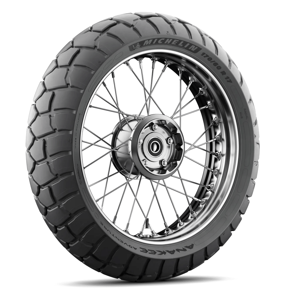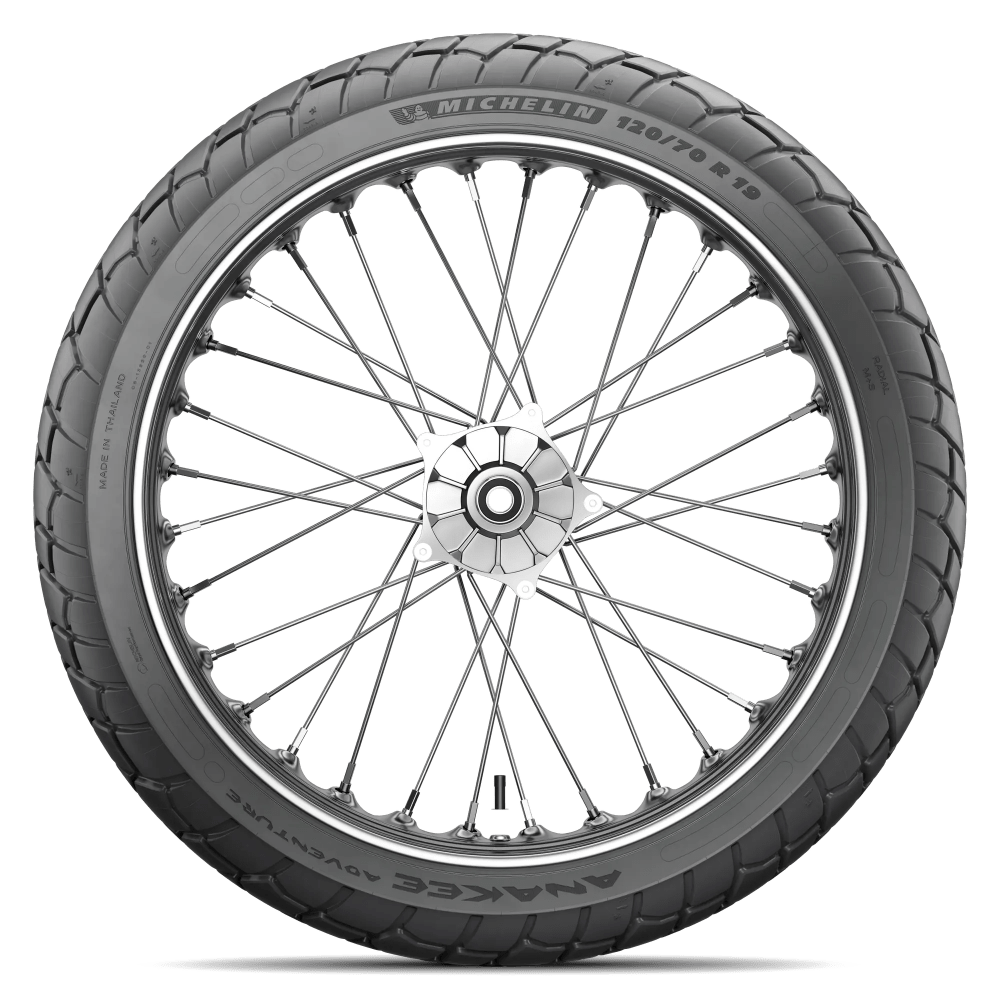 The Michelin Anakee Adventure tire stands out notably for its exceptional grip on wet roads, which is due to its new-generation, silica-enhanced compound. It also combines outstanding performance in dry weather with stability and resistance to wear thanks to two Michelin-patented technologies: MICHELIN Dual Compound 2CT and MICHELIN Dual Compound 2CT+